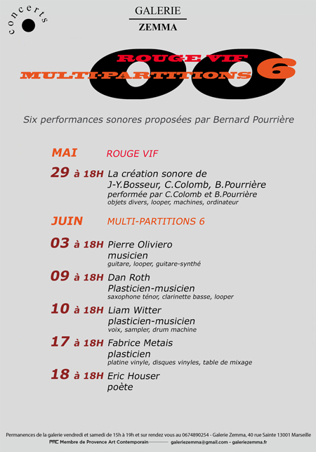 Le 4 décembre Performance sonore de Bernard Pourrière accompagné des musiciens Colette Colomb et Pierre Oliviero sur une partition de Jean-Yves Bosseur.